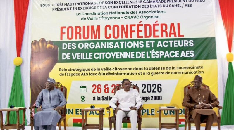 Les Ministres des Affaires Etrangères de la Confédération des États du Sahel (AES) ont pris part, le vendredi 27 février 2026 à Ouagadougou, au forum confédéral des organisations et acteurs de la veille citoyenne, organisé par la Coordination nationale des Associations de Veille citoyenne (CNAVC).
