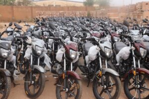 Niamey, Lundi 15 décembre 2025 : En réponse à l’appel de Son Excellence le Général d’armée Abdourahamane Tiani, Président de la République, Chef de l’État, le Groupe MOREY a remis ce matin au Ministre de l’Équipement et des Infrastructures, le Colonel Major SALISSOU MAHAMAN SALISSOU, un lot de 158 motos pour soutenir les Forces de Défense et de Sécurité (FDS) dans le cadre de la sécurisation du territoire national, et particulièrement dans le cadre des travaux de réhabilitation de la Route Nationale n°4 (RN4), section Farié-Téra.